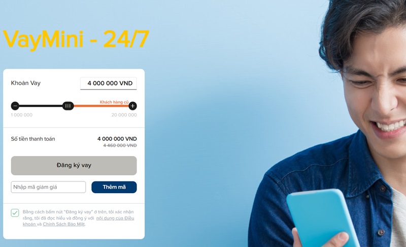 - Hạn mức: 1.000.000đ – 15.000.000đ.